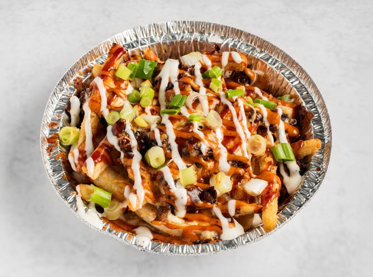 Your choice of fries baked with our pulled beef back ribs topped with shredded cheese, sauces and green onion.